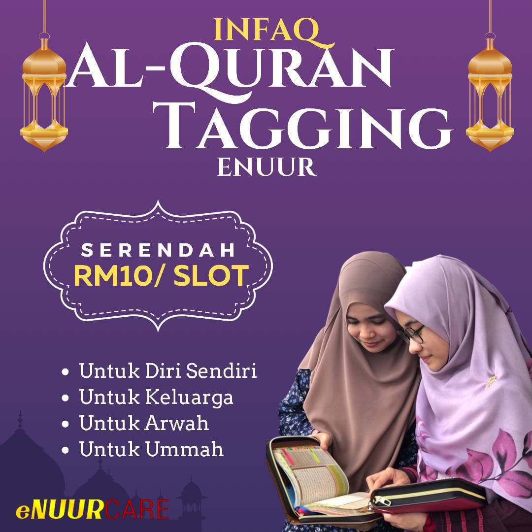 InshaAllah..Kami Team @ENUURCARE menyediakan satu platform untuk membantu anda sama-sama menjayakan Projek INFAQ ALQURAN TAGGING kepada insan yang memerlukan dan tidak berkemampuan memiliki Al-Quran Tagging